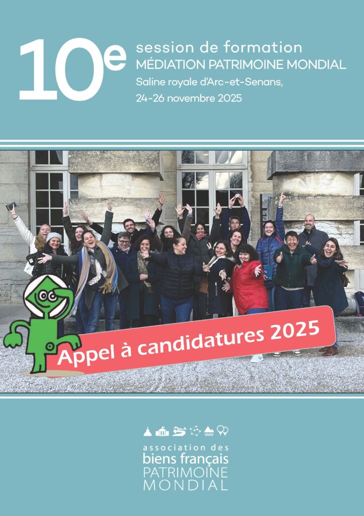 Les pré-inscriptions à la 10e session nationale de la formation « Médiation patrimoine mondial », organisée à Arc-et-Senans du 24 au 26 novembre 2025 par l’Association des biens français du patrimoine mondial en collaboration avec la Saline royale d’Arc-et-Senans et la Mission Bassin minier, sont ouvertes.